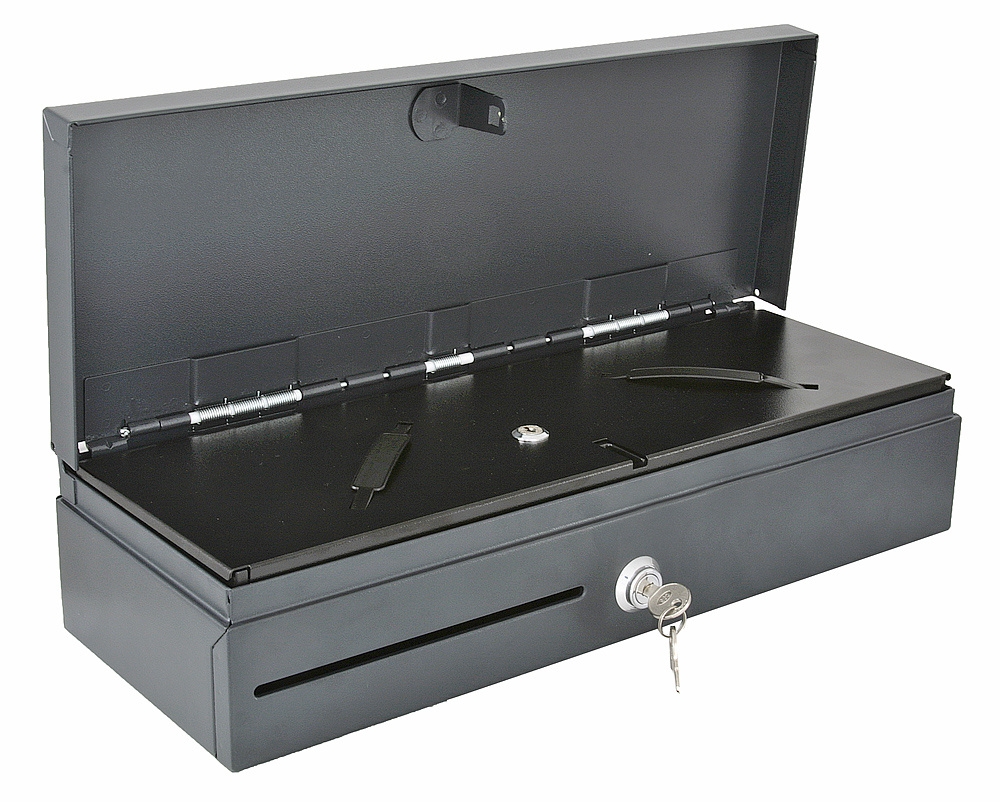 - Cserélhető pénzkazetta, zárható tetővel, így pénztárosonként külön készpénz tárolható